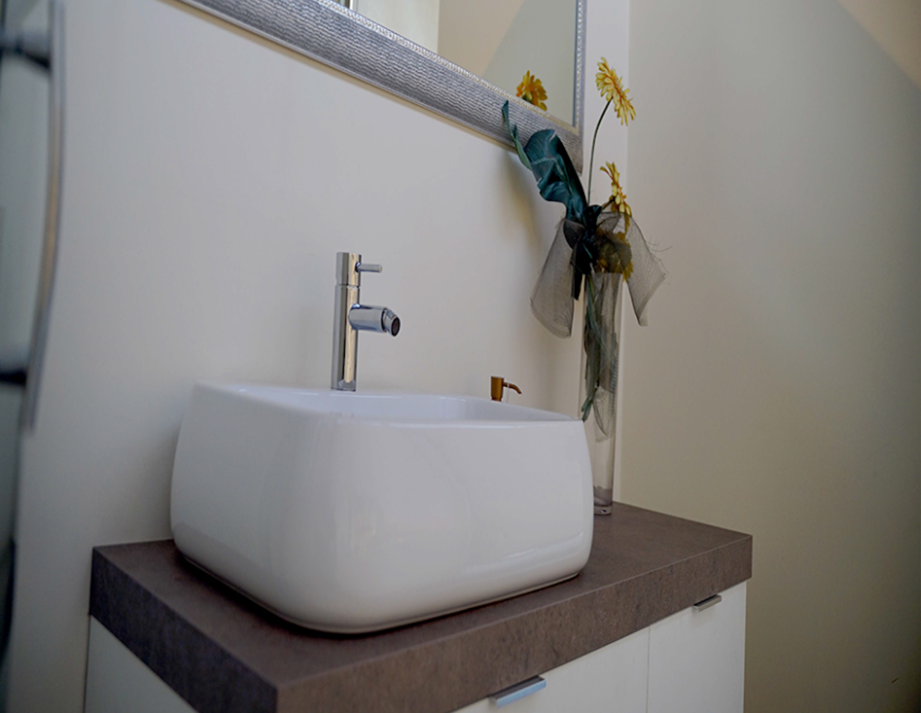 Ogni elemento è realizzato con materiali di alta qualità e finiture curate, in grado di garantire durabilità, resistenza all’umidità e facilità di pulizia.